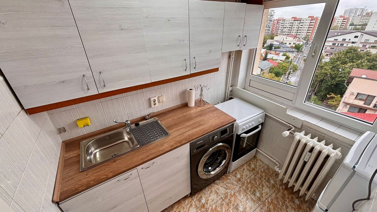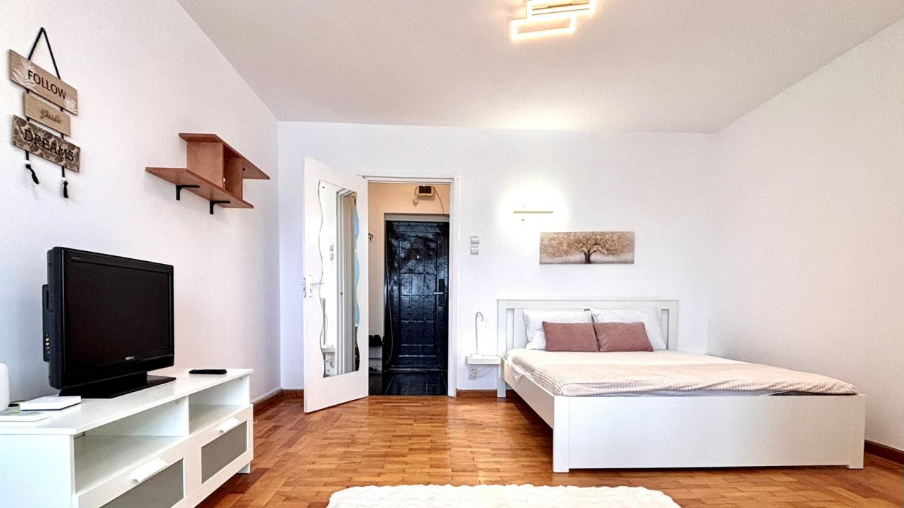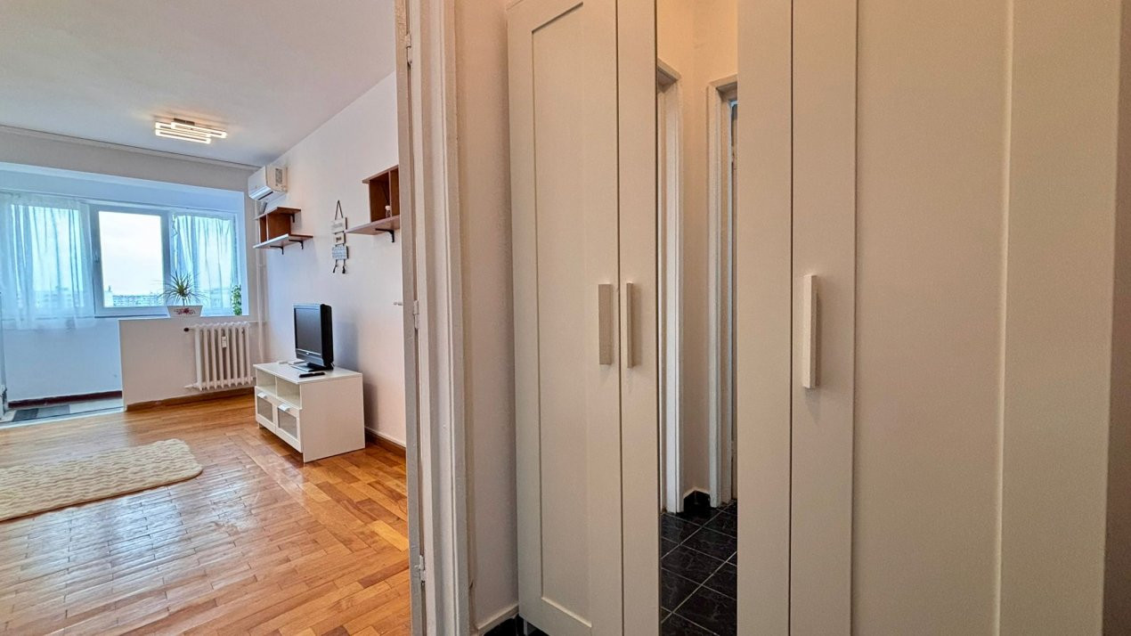 Garsoniera este pozitionata la etajul 8 din 10, cu vedere in partea din spate a blocului, departe de zgomotul bulevardului. Cei 30 mp sunt optim organizati, iar spatiul este pus in valoare de o renovare completa, realizata recent, cu atentie la detalii. Totul este nou: de la mobilier la electrocasnice.