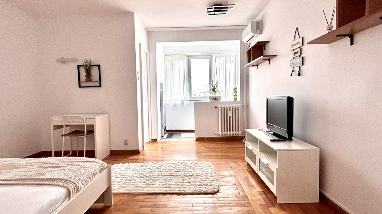 Bucataria este inchisa, separata de zona de dormit, iar pentru confort suplimentar garsoniera este dotata cu aer conditionat.