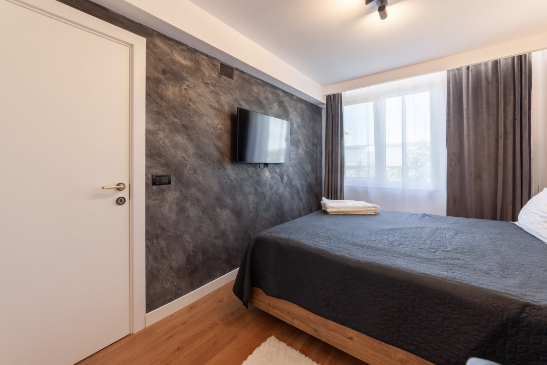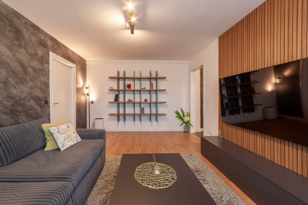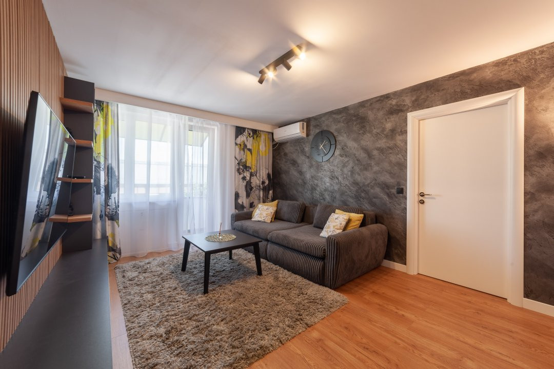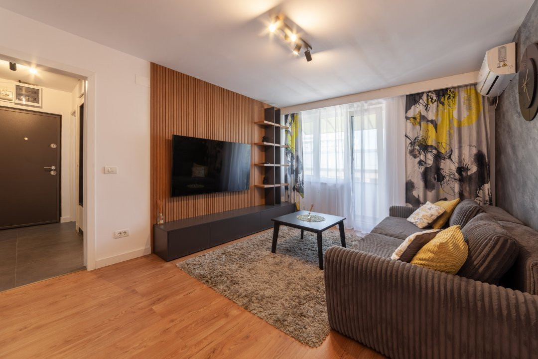 Apartamentul are 44 mp, este semidecomandat si te asteapta complet mobilat si utilat modern. Finisajele sunt premium, iar dotarile sunt gandite pentru confortul zilnic: masina de spalat rufe, masina de spalat vase, plita, cuptor, centrala termica proprie si aer conditionat. In sufragerie si dormitor ai incalzire in pardoseala, un detaliu care face diferenta, mai ales in sezonul rece.