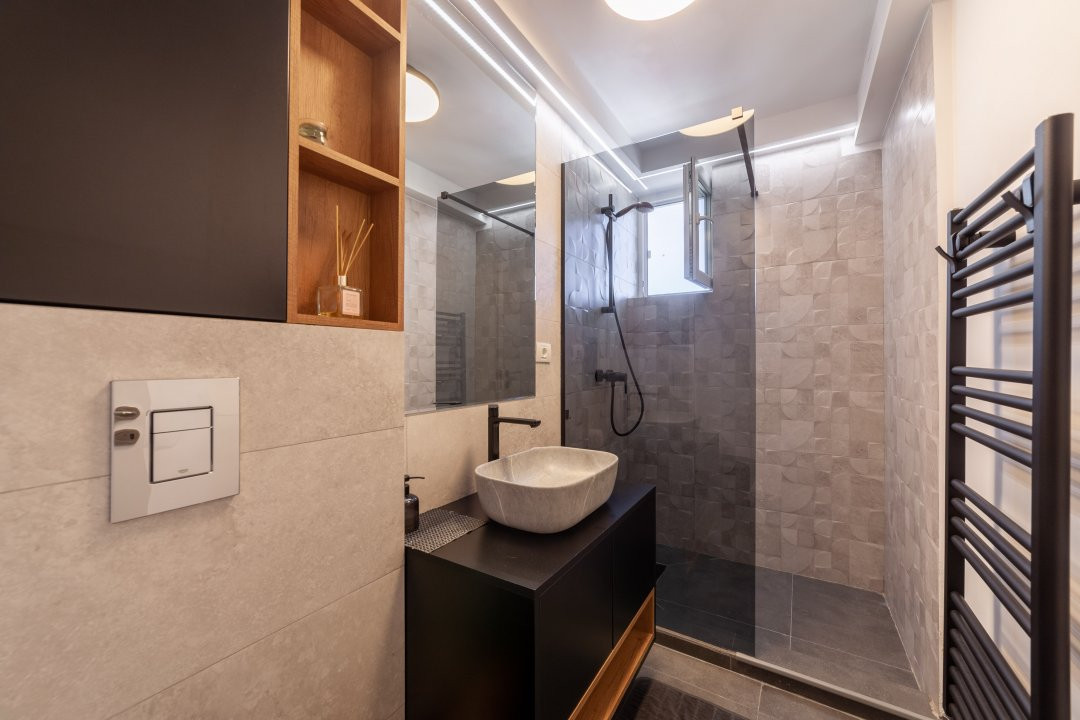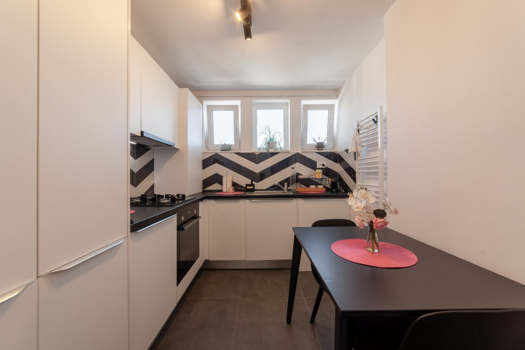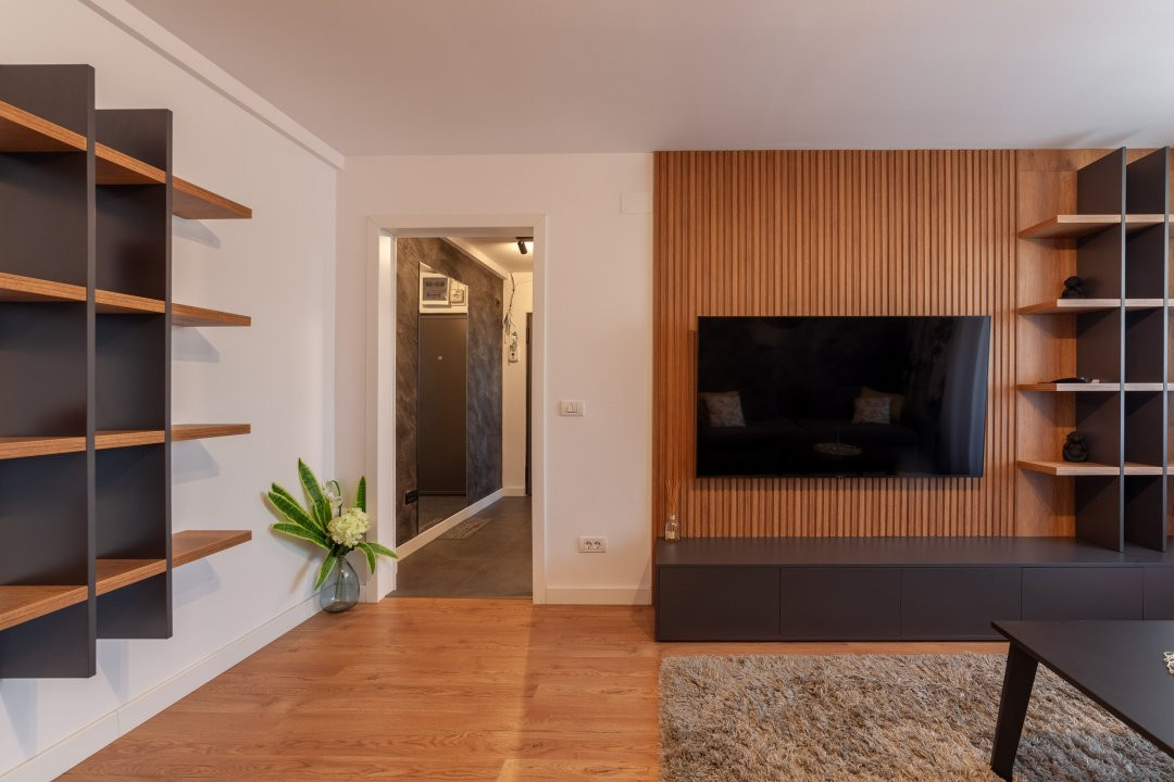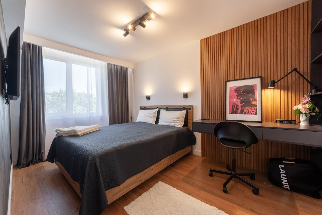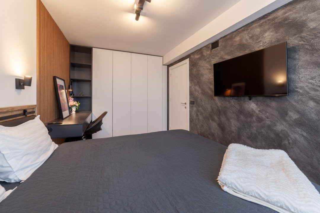 Apartamentul are 44 mp, este semidecomandat si te asteapta complet mobilat si utilat modern. Finisajele sunt premium, iar dotarile sunt gandite pentru confortul zilnic: masina de spalat rufe, masina de spalat vase, plita, cuptor, centrala termica proprie si aer conditionat. In sufragerie si dormitor ai incalzire in pardoseala, un detaliu care face diferenta, mai ales in sezonul rece.
