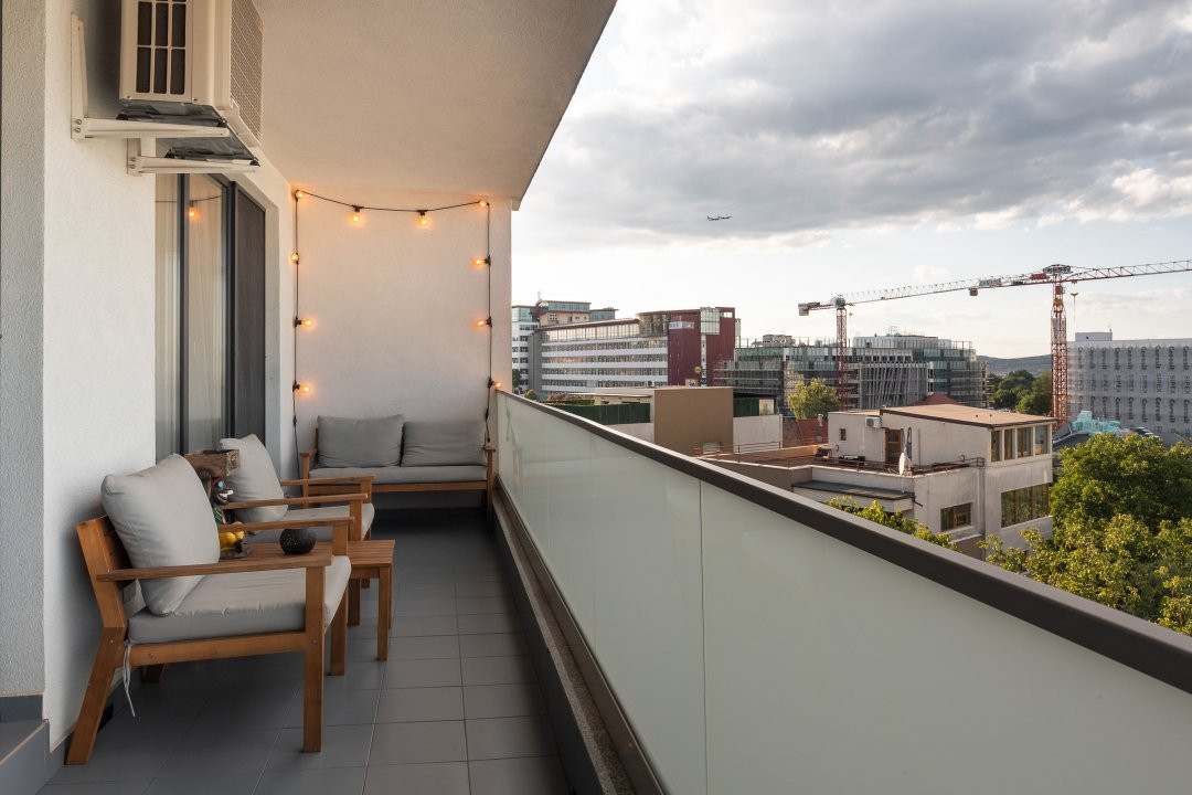 Piesa de rezistență o reprezintă terasa generoasă de 15,4 mp, un adevărat colț de relaxare cu vedere panoramică asupra orașului, amenajată cu gust și ferită de agitația urbană — locul ideal pentru a savura o cafea la răsărit sau un pahar de vin la apus.