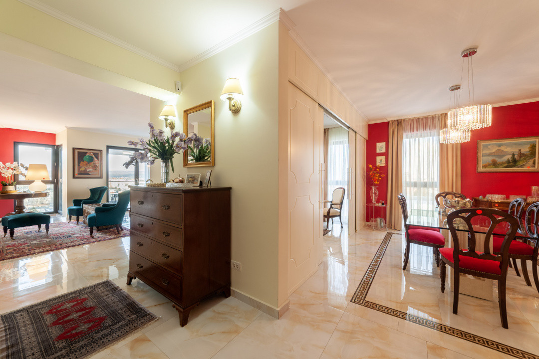 Cu o suprafata utila totala de 162 mp, apartamentul impresionează prin spațiile largi, luminoase, compartimentarea echilibrată și senzația permanentă de deschidere către oraș, oferită de cele două terase cu priveliste panoramica spectaculoasa.