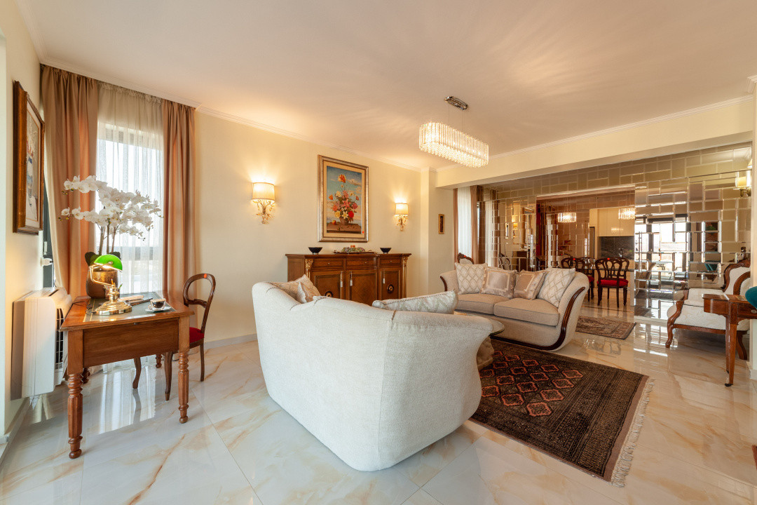 Cu o suprafata utila totala de 162 mp, apartamentul impresionează prin spațiile largi, luminoase, compartimentarea echilibrată și senzația permanentă de deschidere către oraș, oferită de cele două terase cu priveliste panoramica spectaculoasa.
