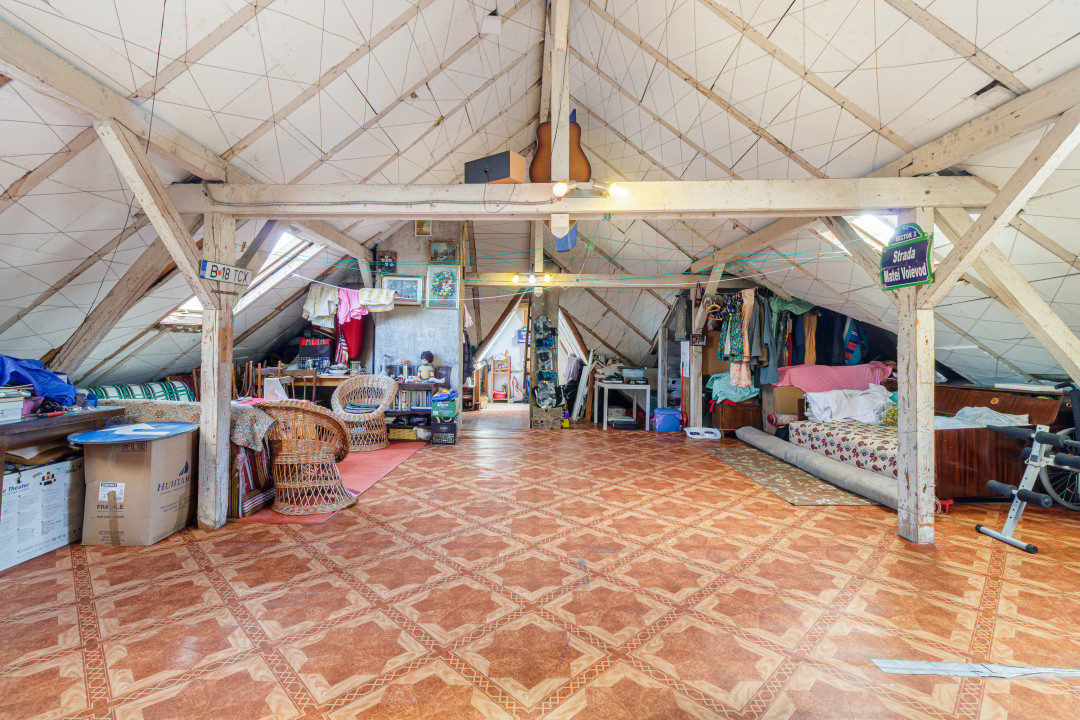 Atmosfera este completată de detaliile fine ale unei case de epocă: lumină filtrată prin ferestre ample, spații de trecere elegante și o distribuție care permite atât viața de familie, cât și organizarea unui birou sau atelier creativ, in special datorita accesului facil catre pod, care are amprenta cat tot apartamentul, si care este inundat de lumina patrunsa prin ferestrele Velux.