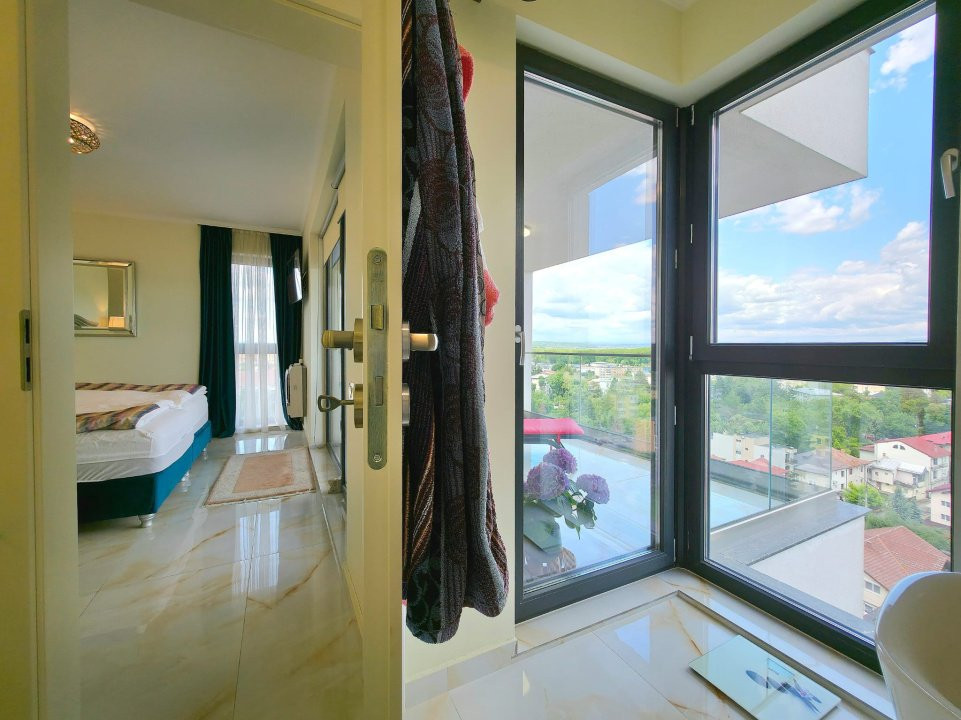 Dormitorul matrimonial reprezintă un adevărat refugiu. Baia proprie dispune de un colț vitrat care permite luminii să pătrundă, aducând spațiului o notă exclusivistă. Toate băile sunt finisate la standarde înalte, cu echipamente premium, inclusiv toalete inteligente Geberit, Aqua Clean și Tuma, complet automatizate, cu bidé încorporat și funcții multiple.