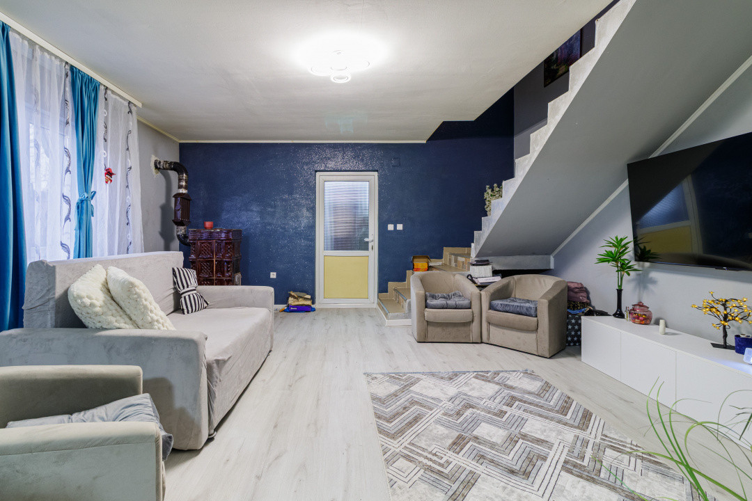 La parter regăsim un living generos, alături de terasa închisă cu geam termopan. Bucătăria este open-space cu livingul, iar tot la acest nivel avem o baie de serviciu, dotată cu aerisire naturală.