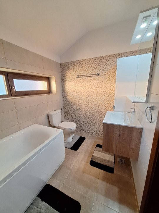 Va propunem spre inchiriere o casa moderna, situata in Stefanesti zona Lidl, la doar 5 min de Pitesti, intr o zona rezidentiala! Regimul de inaltime al imobilului este P+M, structura este realizata din cadre de beton armat si caramida Porotherm de 25 cm, izolatie exterioara de 10 cm, tamplarie PVC, iar accesul se face pe un drum asfaltat. Aceasta casa va ofera intregul confort de care sa va bucurati in fiecare zi, iar compartimentarea ei inteligenta este cea care permite utilizarea optima a imobilului. Suprafața terenului este de 430 mp, din care curte liberă 370 mp, suficient pentru parcare și spațiu verde pentru zilele însorite - veți aprecia curtea casei si superba terasa unde puteți petrece timpul alături de familie/prieteni, savurând un pahar de vorbă și preparând un grătar delicios. Confortul necesar al locuinței este configurat astfel: - parterul - living generos, bucatarie inchisa din care se face accesul in terasa exterioara, grup sanitar cu cabina de dus , hol; - etajul este destinat zonei de noapte, unde regasim dormitorul pentru copii, dormitor matrimonial , dormitor pentru oaspeti, grup sanitar dotat cu cada, hol. Toate camerele dispun de geamuri termopan , asigurând izolare termică și fonică excelentă. Incalzirea se face prin centrala proprie si dispune de toate utilitatile: apa curenta, canalizare, gaze naturale, energie electrica, cablu si internet, instalatie de AC, aspecte care completeaza confortul acestei minunate case. La doar cateva minute de mers, regasim supermarket, si mijloc de transport in comun. Mai multe poze/detalii in privat. Vă invităm să descoperiți această oază de liniște și confort care vă așteaptă să o numiți "acasă", pentru o perioada de minim 1 an de zile. Se poate viziona in orice zi, cu programare cu minim o zi inainte. Toate acestea cu 0% COMISION pentru chirias!