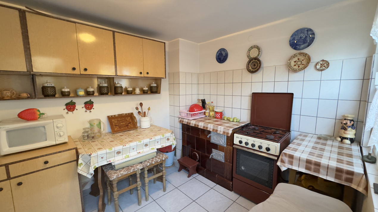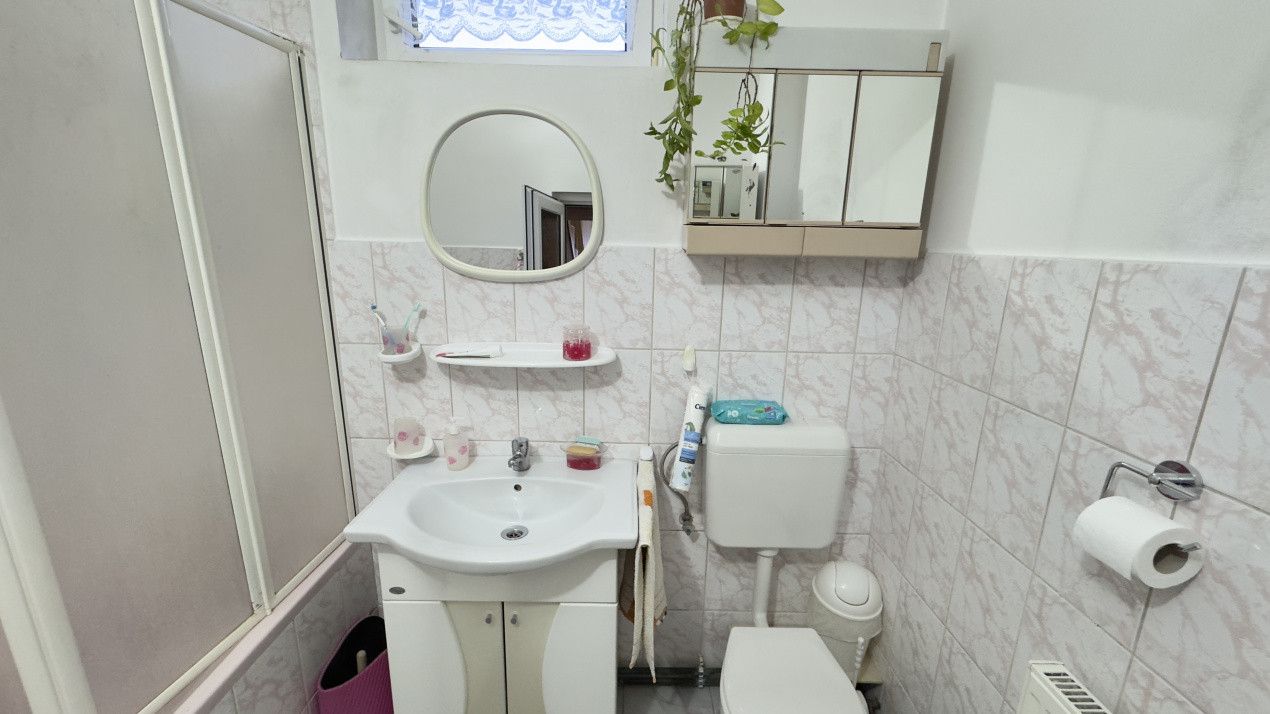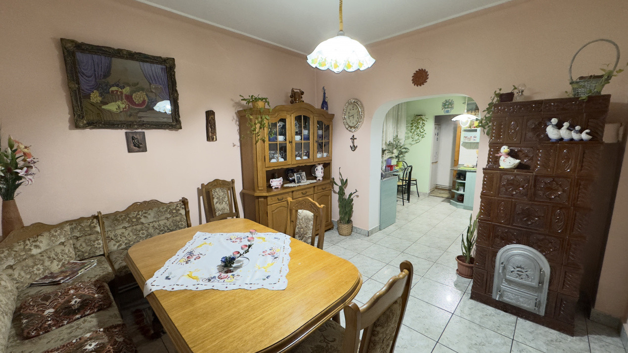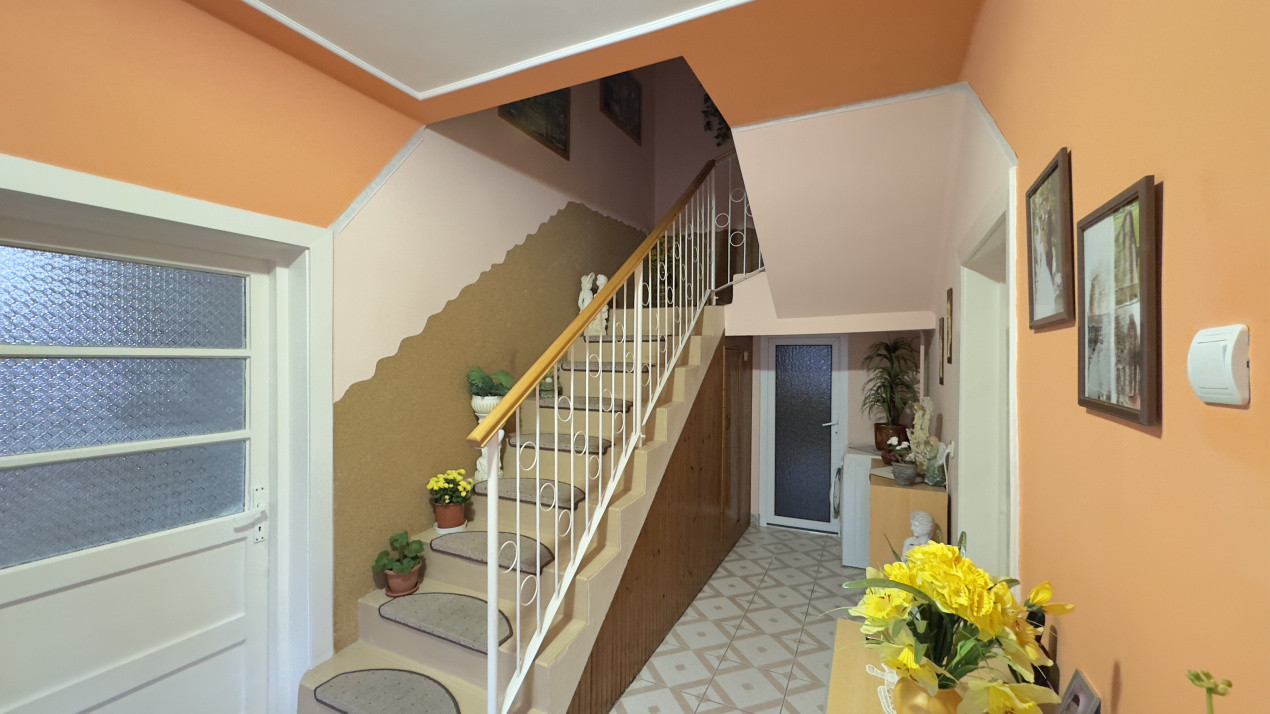 Casă solidă cu fundație din piatră de munte și beton, structura pereților din cărămidă, acoperișul cu țigla ceramică, este împărțită pe 2 nivele P+1 cu acces la etaj prin casa scării fiind dotată cu incălzire centralizată cu centrală pe gaz cu calorifere, tâmplarie PVC cu geamuri termopan și rulouri exterioare PVC, uși interioare din lemn și celulare, parchet din lemn masiv, ușă intrare din PVC și este racordată la gaz, apa de oraș, canalizare, curent electric și este compusă din următoarele: