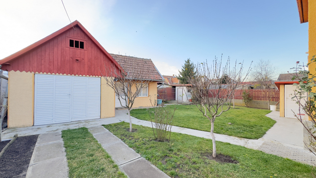 In curte avem o anexă folosită ca și bucătărie de vară cu o terasă deschisă și 1 garaj cu spațiu de depozitare.