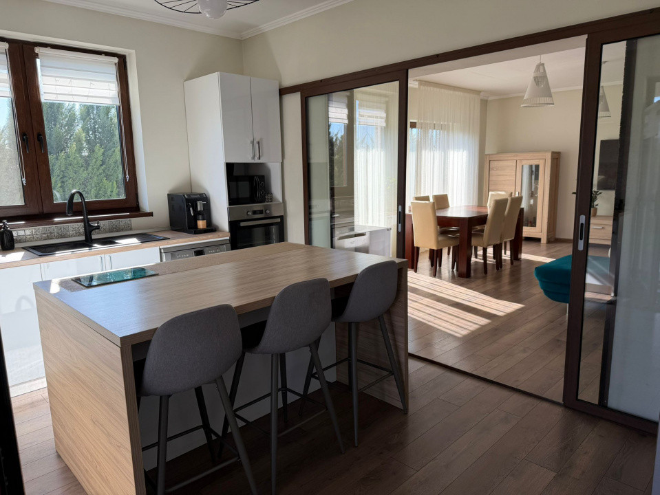 Dispune de 3 dormitoare, 2 băi, o bucătărie închisă cu sticlă și cu ieșire pe terasă unde există și camera tehnică.