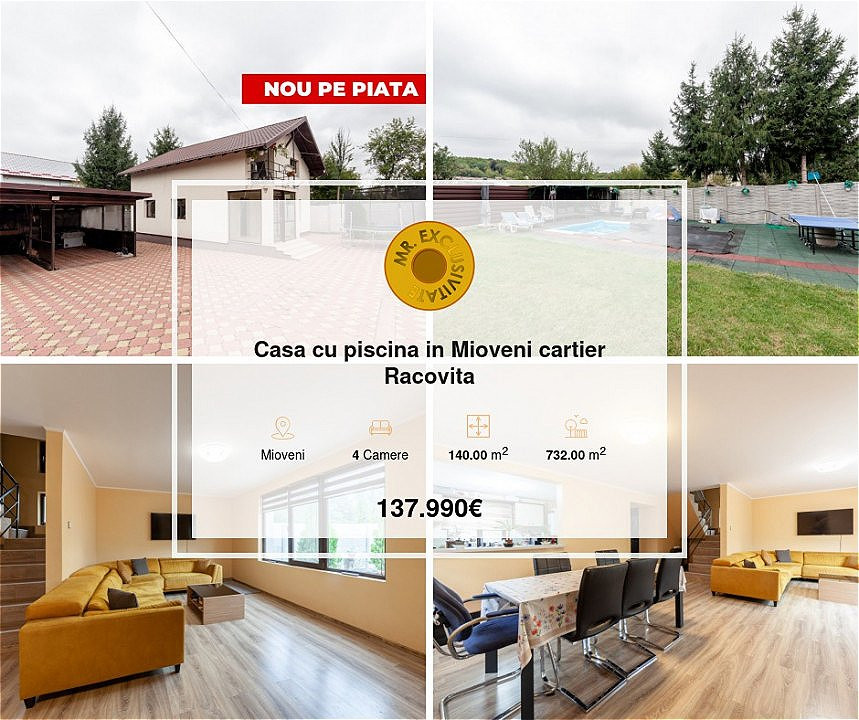 Casa cu piscina in Mioveni, Racovita. Asezata intr-o zona linistita, inconjurata de verdeata si aer curat, aceasta locuinta iti ofera sentimentul ca esti departe de aglomeratie, desi ramai aproape de oras. La cativa pasi gasesti un spatiu de relaxare in aer liber si un teren de fotbal luminat seara, un loc unde copiii se intalnesc si cartierul prinde viata.