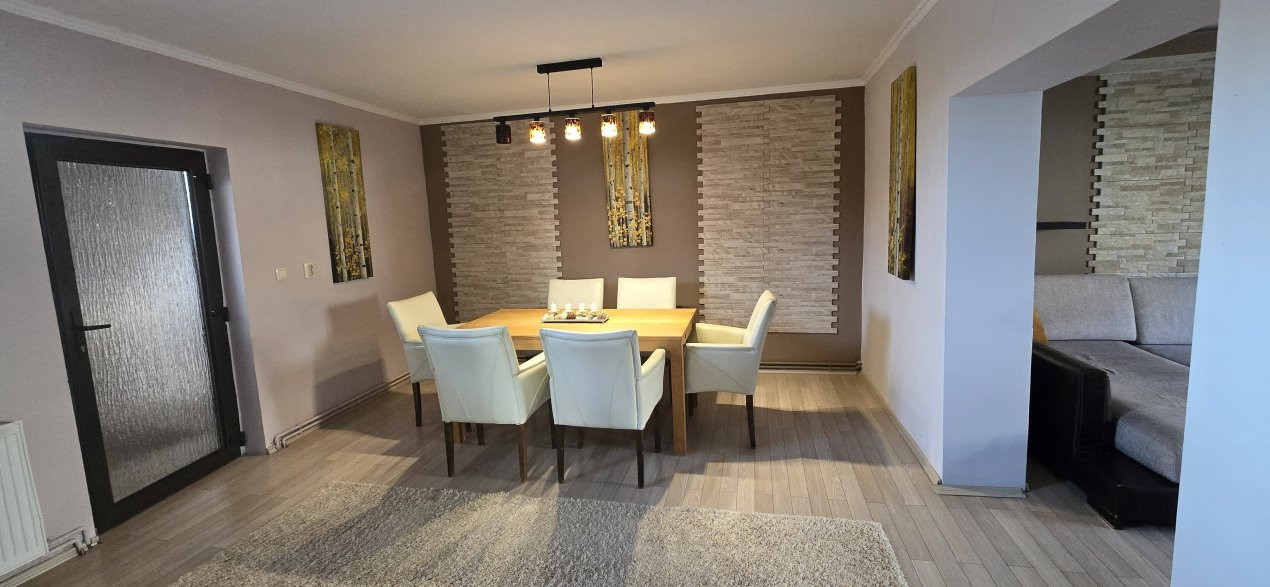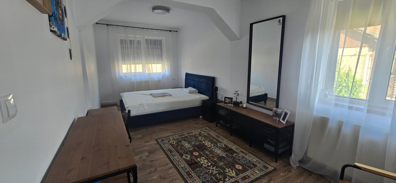 Casa se situează într-o zonă liniștită a orașului, este cu etaj, având 4 dormitoare, bucătărie ,mobilată și utilată, cameră de zi, living, atât jos cât și la etaj, loc de luat masa, 2 băi, o superbă mansardă, un loc perfect pentru a te răsfăța, relaxa, iar partea de curte are garaj cu telecomandă și zona de grill.