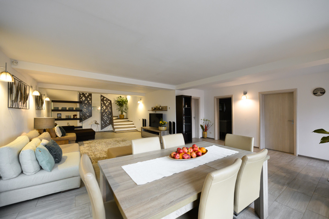 - La nivelul parterului se află și garajul închis, cu acces direct în interior.