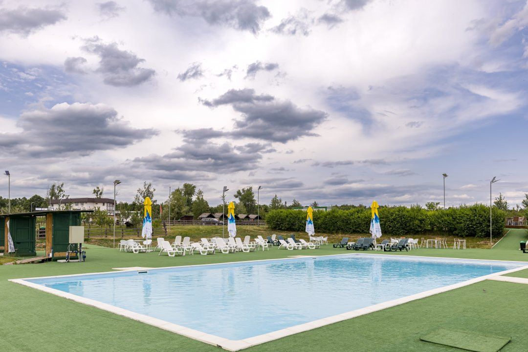 Pe terasă se aud râsete și clinchetul paharelor, iar în zilele calde, piscina devine centrul bucuriei.