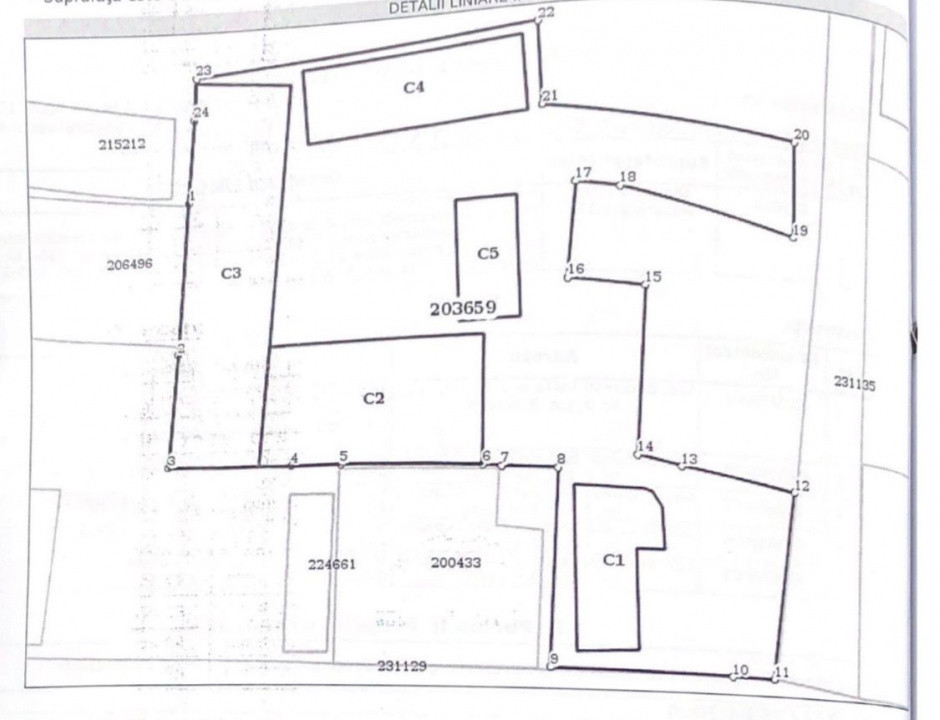Teren cu o suprafață de 1.100 mp în acte și 1.165 mp măsurați.
